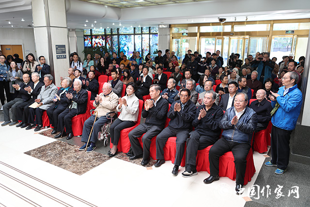 已经104岁的马识途先生亲临活动现场,实现了他4年前的心愿。2014年5月24日,“马识途百岁书法展”在中国现代文学馆开幕,百岁马老曾在开幕式上说:“我还要来北京参加下一次的展览!”4年之后,精神矍铄的马老果真来到书法展的现场,和新朋老友共同分享艺术创造的喜悦。