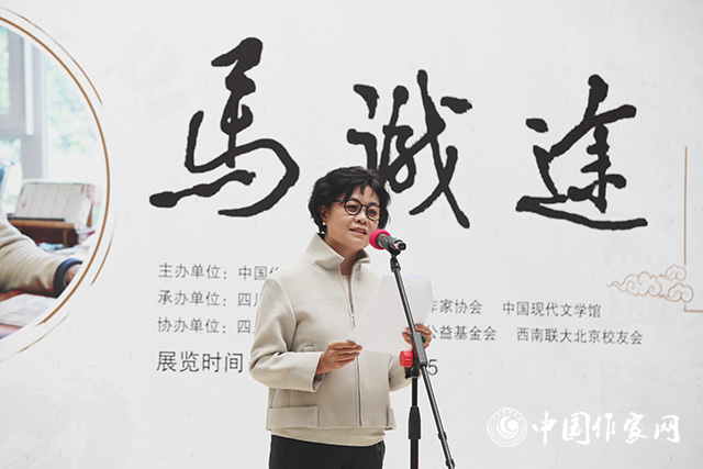 铁凝谈到,马老是真名士,他不竭的创造力还来自于他的博学和博雅。马老的书法作品大气磅礴,舒朗劲健,笔墨之间有金石声、松柏意,间或又跳脱甚至调皮,如天真的儿童。正所谓字如其人,看着这些字,仿佛看见了马老,听见了马老的笑声,这就是马老,历经沧桑而始终葆有赤子之心。铁凝表示,今天我们举办这次展览,同时举办新版《马识途文集》发布会,既是对马老文学和书法艺术成就的回顾、展示,也是为了借此机会向我们共同尊敬的马老致以诚挚的祝福。“犹道夕阳无限好,奋蹄驽马奔长途。”这是马老一首自寿诗里的诗句,洋溢着“老骥伏枥,志在千里”的壮志豪情。革命人永远是年轻,在新时代的新征程中,这位老战士和我们永远在一起,这对我们是极大的鼓舞。