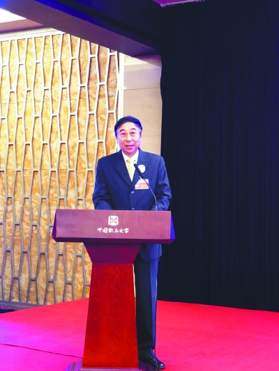 新任中国文艺志愿者协会主席冯巩致大会闭幕词。 郭超摄/光明图片
