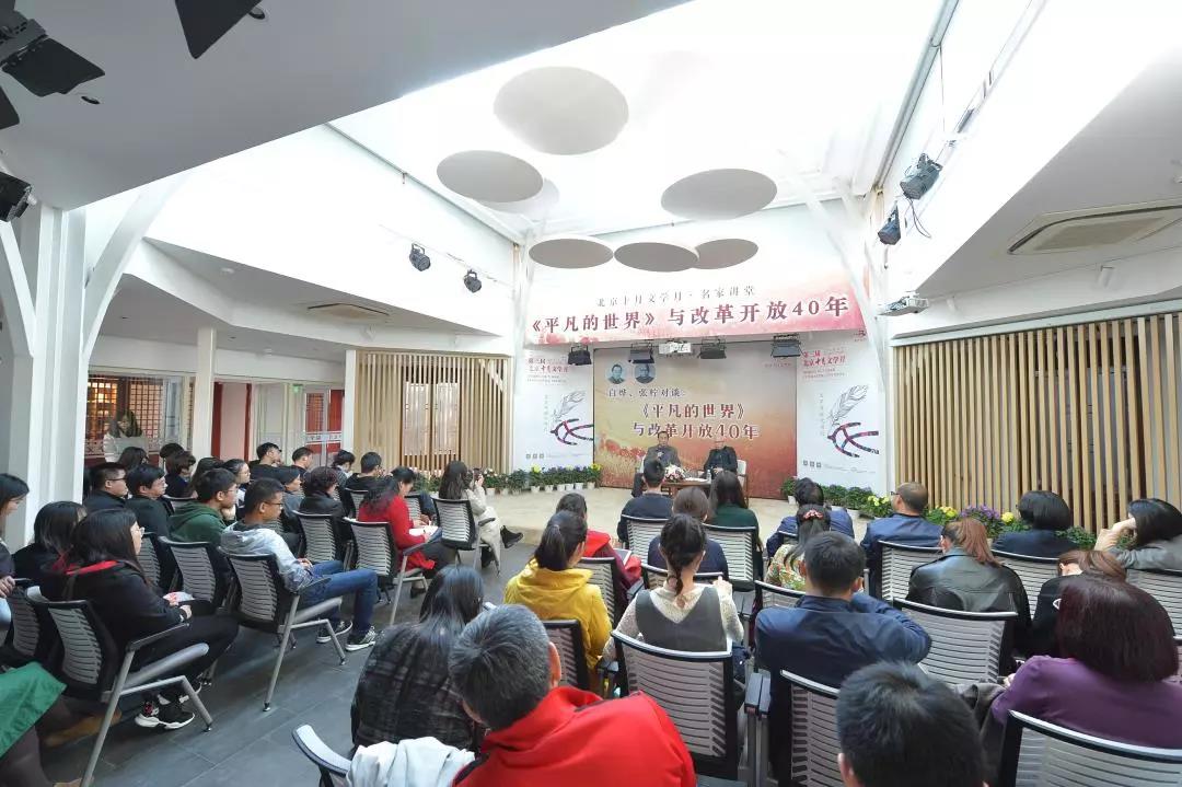 作为第三届“北京十月文学月”最重要的公众活动之一,在10月16日下午,中国社会科学院研究生院教授、中国当代文学研究会会长白烨与北京师范大学文学院教授、中国当代文学与文化研究中心主任张柠,在十月文学院围绕“《平凡的世界》与改革开放40年”主题进行对谈交流。