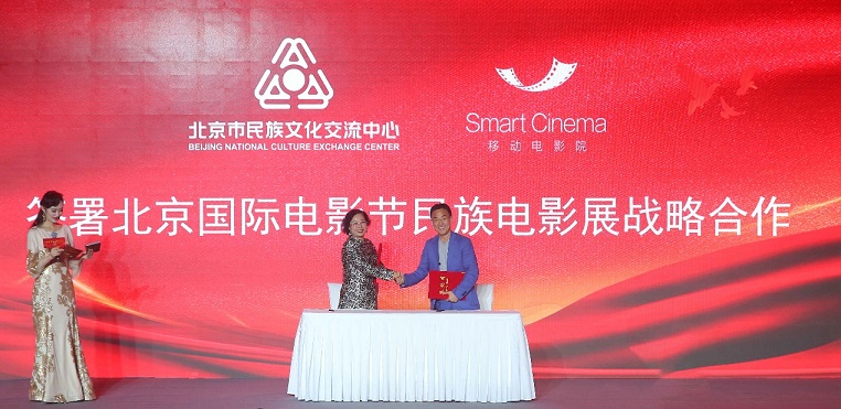 在当天的活动上,北京市民族文化交流中心也与移动电影院达成战略合作,以电影为媒介,搭建一个促进各民族像石榴籽一样紧紧抱在一起的交往交流交融新平台,使民族文化多了一种深度和广度兼具的传播途径。未来将在民族电影文化沙龙、高端论坛、优秀影片展播等推介领域进行深度合作,吸引更多人关注民族电影、关心民族工作。