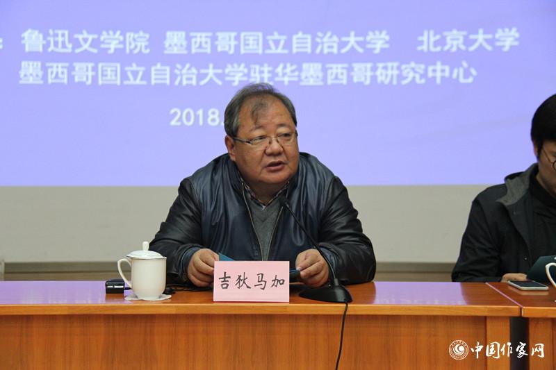 吉狄马加代表中国作家协会和鲁迅文学院向墨西哥作家、学者的到来表示欢迎。他说到,尽管在地理距离上比较遥远,墨西哥在文化上、文学上是非常多元的一个国家,有着深厚的文化传统和文化底蕴,有着灿烂的古代文化。彪炳史册的太阳历法就在墨西哥诞生,对人类文明史产生了重大的影响。在不同历史阶段,墨西哥都有很重要的思想家、诗人出现,比如胡安•鲁尔福、奥克塔维奥•帕斯等。墨西哥的文学创作与思想,对世界文学来说是一个很重要的、可参照的坐标系。