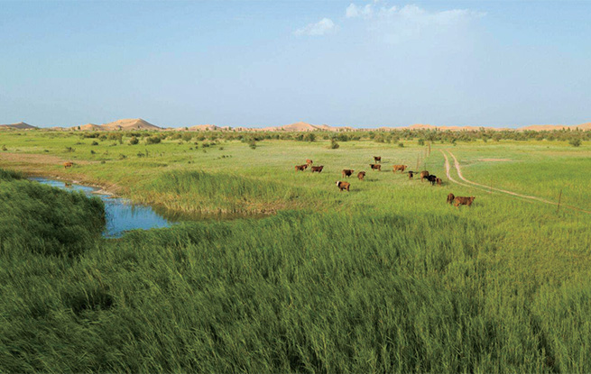 今年夏天,我接受了采访撰写有关鄂尔多斯库布其沙漠治理模式文学作品的创作任务,深入到鄂尔多斯沙漠的腹地,去感受沙漠的巨变,聆听治沙人的心声。我在大漠中的林海间穿行,在草浪翻卷的沙漠间徜徉,产生一种梦幻的感觉。多年来,我痴迷上了鄂尔多斯沙漠,为鄂尔多斯沙漠的沧桑巨变折服,书写沙漠已经成为我人生的一部分。作为鄂尔多斯沙漠巨变的记录者,我有这样一种感受:鄂尔多斯人改造着沙漠,同样沙漠也在改造着鄂尔多斯人。在与沙漠拉锯般的苦斗中,人只有与沙漠和谐共生,才能真正做到“绿富同兴”。在半个多世纪的人沙大战中,在艰难的科学的探索中,人们发现,鄂尔多斯沙漠的荒芜与鄂尔多斯人的贫穷成正比,同样,鄂尔多斯人的富裕与鄂尔多斯荒漠化的有效改造成正比。在荒漠化治理中收获文明与富裕,形成了鄂尔多斯人“绿富同兴”的生态观,成功地实践了习近平总书记“绿水青山就是金山银山”的生态思想。鄂尔多斯人常讲的“有钱不往沙里投,富了自己穷子孙”,“治沙不治穷,到头一场空”。这是对沙漠的守望,对草原的畅想,对脚下土地的坚守。于是在鄂尔多斯沙漠里,出现了许多重要的治沙人。他们之中,有的是身价上百亿的大老板,是他们最早将工业化之光和科学思维带进治理荒漠化领域的。