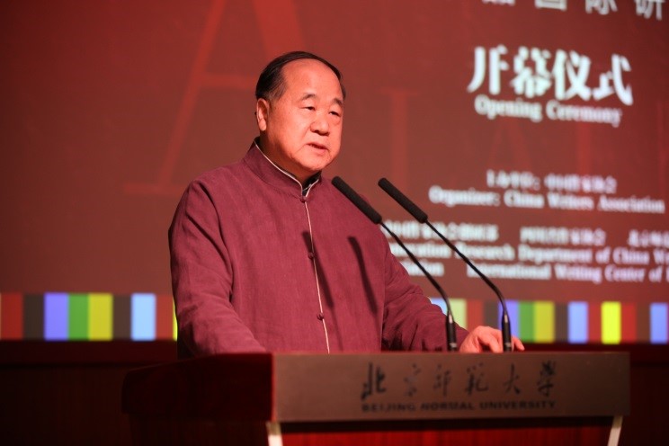 11月17日,由中国作家协会主办,中国作家协会创作研究部、四川省作家协会、北京师范大学国际写作中心承办的“边地书、博物志与史诗——阿来作品国际研讨会”在京举行。中国作协主席铁凝出席开幕式并致辞,中国作协党组成员、副主席吉狄马加主持开幕式。中国作协副主席、北师大国际写作中心主任莫言,四川省作协党组书记、常务副主席侯志明,瑞典汉学家、翻译家陈安娜等出席活动。