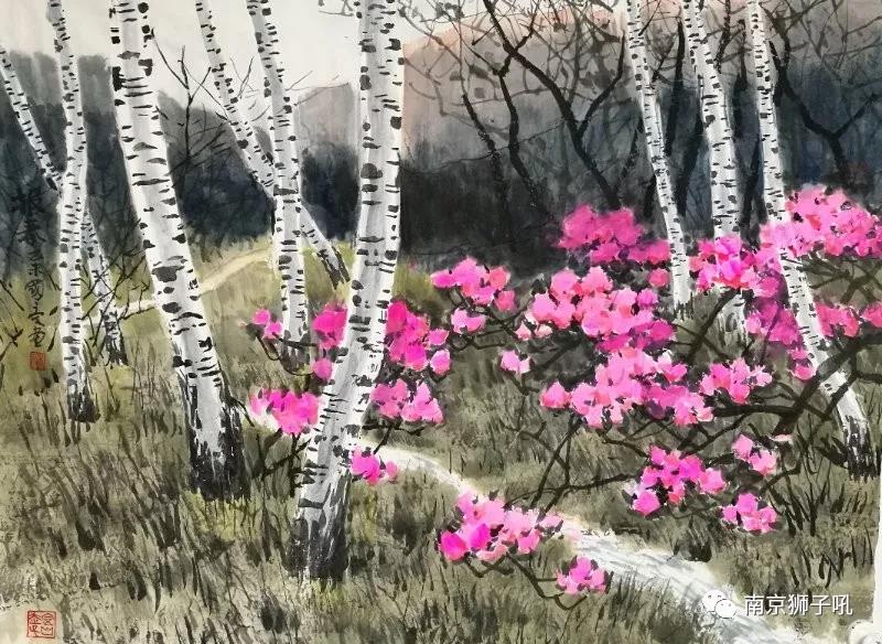 又过一年,求雨山文化园展出吴国亭先生的画作,据说开展那天人山人海,我是在沸腾的人潮过后去观画的,偌大个展厅,近百幅画,吴先生将祖国的山川大地藏于胸中,怀着一腔的大爱,让山脉河流、树木花草、鸟鸣蝶舞都鲜活灵动起来,使人随着他多彩的笔墨步入一个雄浑博大、色彩缤纷的世界、一个广袤无垠的天空大地,山啊海啊河啊树啊花啊草啊鸟啊蝶啊……都在观者凝眸的瞬间呈现出独具的个性,于是你看到山有势水有柔树婆娑花弄影鸟飞蝶舞……一派山川自在胸的多彩画面。