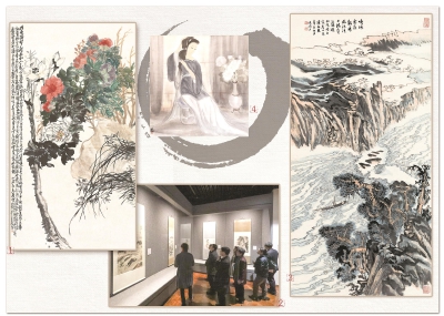 ①吴昌硕《富贵神仙》。(上海市美术家协会供图)②展览现场。本报记者叶辰亮摄③陆俨少《杜陵诗意图》。(上海市美术家协会供图)④林风眠《赏花图》。本报记者叶辰亮摄制图:冯晓瑜