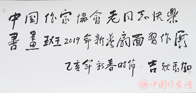 吉狄马加为中国作协老同志快乐书画班2019年新春扇面习作展题词