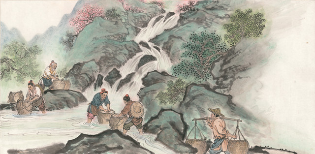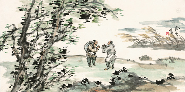 这其中,浓浓的父子之情、手足之情、邻里之情、师徒之情、朋友之情,中国人特有的人情味浸洇在简约灵动的文字和气韵生动的水墨画卷中。这种种缱绻的情感是中国人人文精神和人文情怀的延续,朴素却又温暖。这是《瓷》中,家里媳妇的勤劳操持,将一家老小的日常生活打点得舒适温馨;是《茶》中,茶人炒制茶青时,父子搭档、兄弟配合、邻里互助的默契配合;是《纸》中,男孩们早早领悟到的对家庭的责任和担当,将那份制纸的工作不急不缓地落在自己的手上,真诚地接过,认真地完成;更是《扇》中,做扇套的阿牛娘儿子生病了,扇子铺的老板请伙计多给她一成工钱时,人与人之间的信赖和扶持。