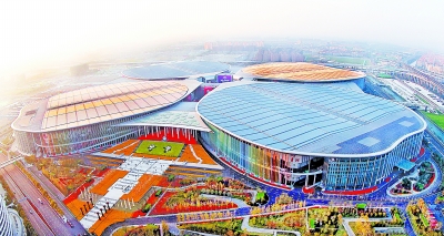 改革开放以来,中国始终坚持对外开放基本国策,积极推动建设开放型世界经济、构建人类命运共同体,成功实现了从封闭半封闭到全方位开放的伟大转折,为世界和平与发展不断贡献中国方案与中国力量。图为首届中国国际进口博览会主会场上海国家会展中心。新华社发