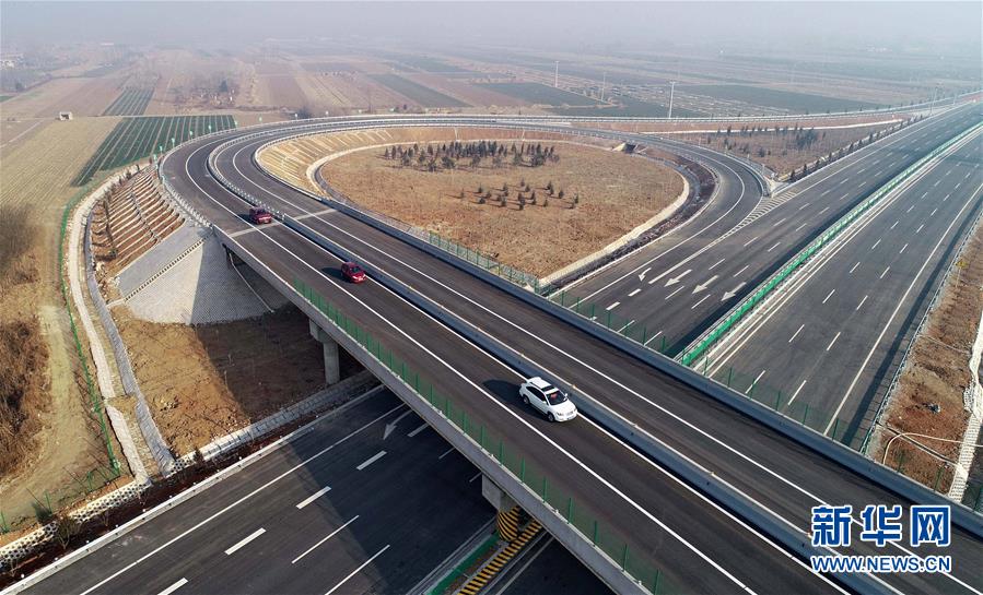 2018年12月16日无人机拍摄的京秦高速公路二期工程河北玉田西进出口处的立交桥。新华社记者 杨世尧 摄