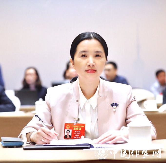 潘向黎代表在审议政府工作报告 (摄影:袁婧)