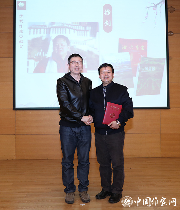 程绍武为优秀作家贡献奖获得者徐剑颁奖