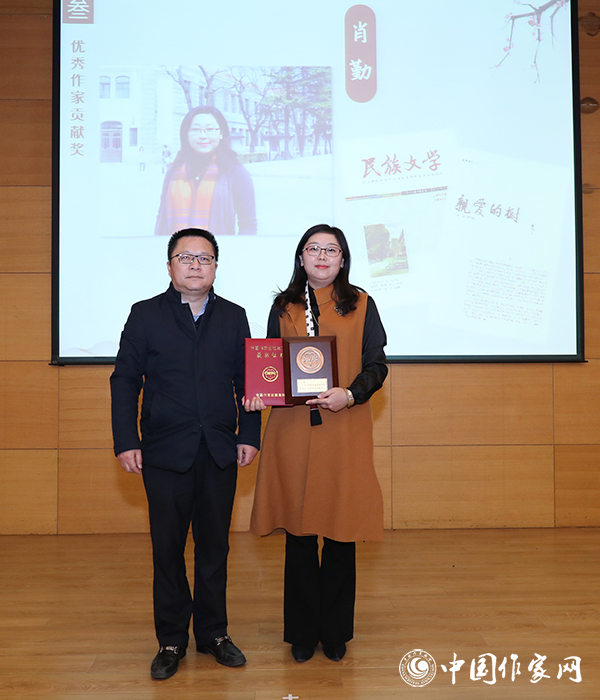 李少君为优秀作家贡献奖获得者肖勤颁奖