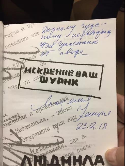 后来,她的丈夫安德烈·克拉苏林插话问起了中国气功,并说他到过中国,在中国还有气功师傅,等等。我对气功一窍不通,无法与他对话,只能听他绘声绘色地讲述。由于他的插话我们的话题就转到中国题材上来。乌利茨卡娅对中国很感兴趣,询问了中国的经济、城市建设,乃至中国养老金的情况,当说到中国40年来改革开放取得的成就,乌利茨卡娅赞叹地说:“Это чудо!”(这是个奇迹!)。