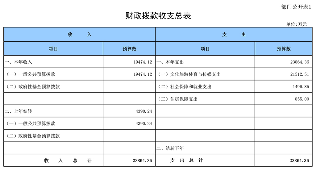文化旅游体育与传媒支出(类)支出17122.27万元,占比87.92%;社会保障和就业支出(类)支出1496.85万元,占比7.69%;住房保障支出(类)支出855万元,占比4.39%。
