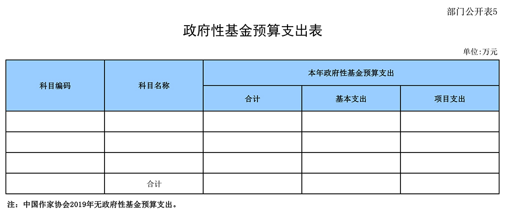 五、关于中国作家协会2019年政府性基金预算支出情况说明