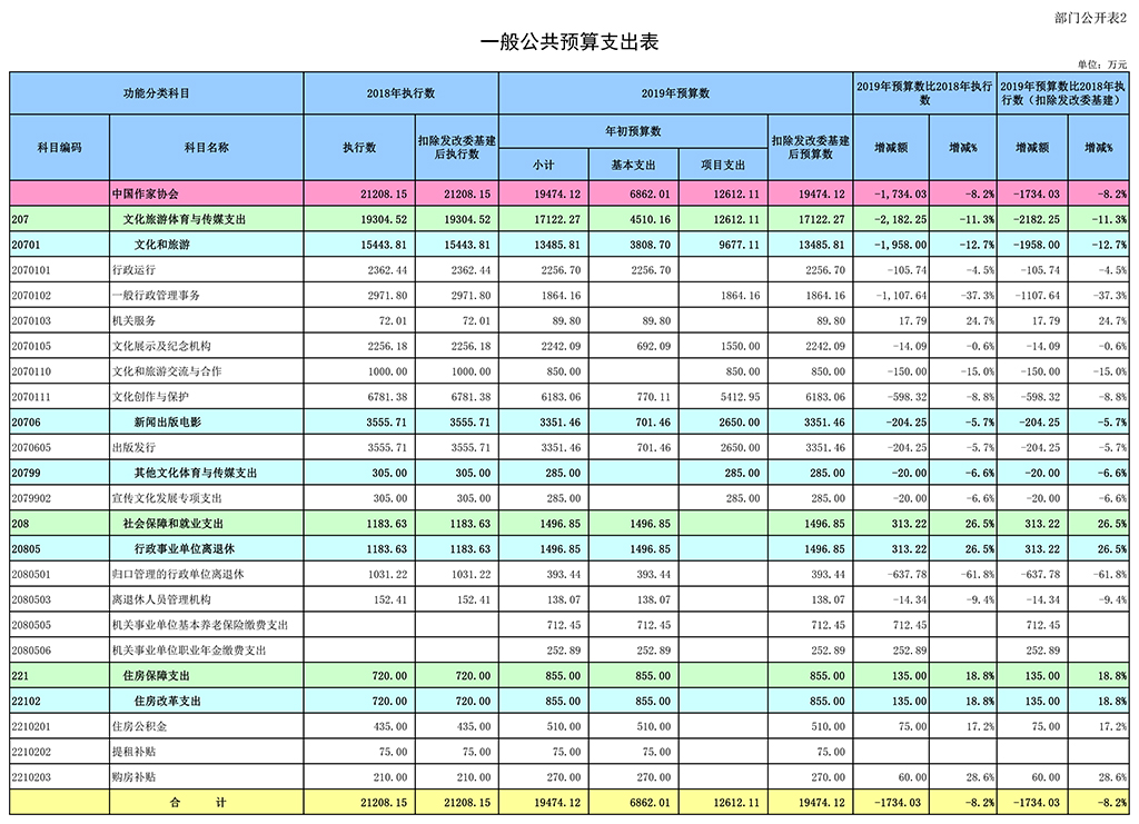 一、关于中国作家协会2019年财政拨款收支预算情况的总体说明
