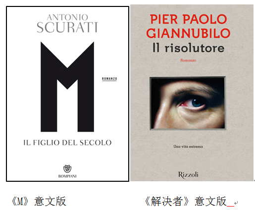 入围作品中,另一类比较重要的是历史题材,主要涉及意大利民族复兴运动、法西斯的历史和上世纪70年代意大利的恐怖运动。属于这类题材的小说包括:《世界的喧嚣》《黑色菠萝》《M.世纪之子》《解决者》。前两部主要描述青年人的成长,后两部则是对成熟男性生活的描写。不过,如此分类过于笼统和武断,因为四部作品无论从视角、主题、侧重和手法上都各不相同。