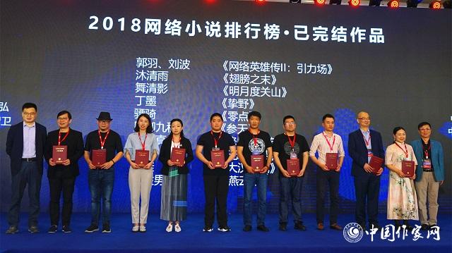 2018中国网络小说排行榜已完结作品上榜作者领取证书并合影