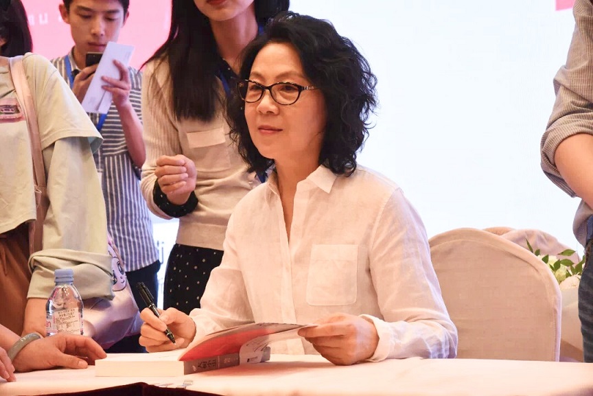 池莉在《大树小虫》首发式暨新书分享会上为读者签名
