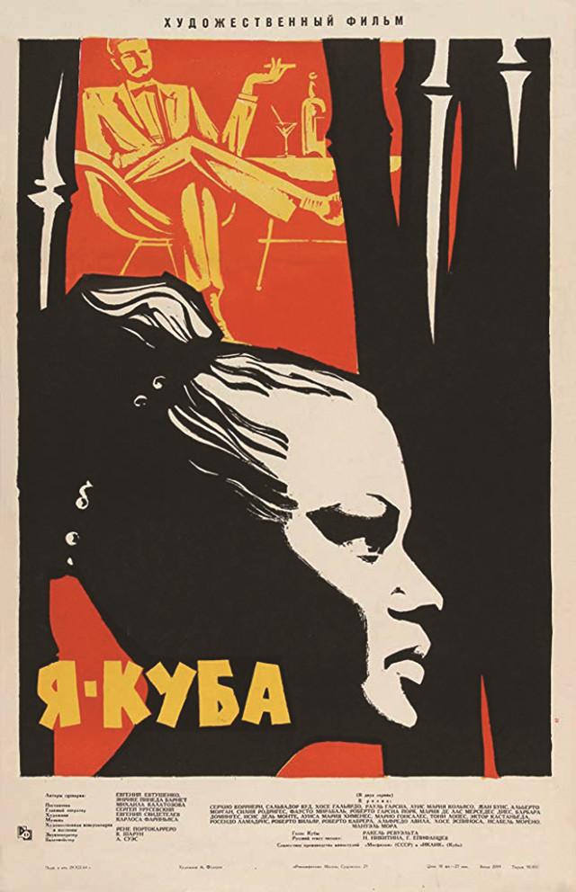 1957年,苏联“解冻”初期,卡拉托佐夫执导的《雁南飞》在第11届戛纳电影节上斩获金棕榈奖,他的“诗电影”自此在西方影史留名。《我是古巴》的两位编剧也都是诗人,古巴人恩里克·巴尼特(Enrique Pineda Barnet)担任此片编剧时还不到30岁,日后他主要从事导演工作,同时也创作诗歌;另一位则是“解冻”时期红极一时,如今已经差不多被遗忘的诗人叶甫根尼·叶甫图申科。