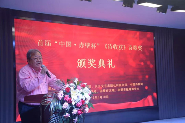 吉狄马加在致辞中向首届《诗收获》诗歌奖的获奖者表示祝贺。他说,来到赤壁,我们自然会想起古代诗人书写赤壁的精彩诗篇。当代汉语新诗,在诗歌国际交流日益频繁的大背景下,需要回到汉语本体,回到本民族的精神源头,接续汉语诗歌的传统,展现中华民族的审美品格。《诗收获》诗歌奖的创设和颁发,正是汉语新诗与汉语诗歌传统对接的体现。
