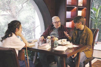 金雯(左一)、努涅斯(中)与施蒂格在作家书店