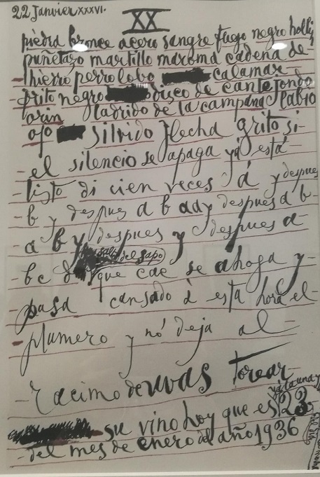 上世纪30年代中后期,毕加索开始诗歌创作。何塞·莱夫雷罗说,当时在巴黎生活的毕加索作为艺术家成名已久,但也会感到孤独,怀念故乡马拉加,他以语言作为武器,通过写作来表达自己的想法。他的诗有些难以理解,但从中可以看出他的才华以及对于创作的热情。欧亨尼奥·卡尔莫纳谈到,有研究者认为毕加索的诗作反映出他处在危机之中,“但他什么时候不处在危机当中呢?他对于世界各地的事情都一直保持关注”。卡尔莫纳说:“毕加索写作是因为他有话要说,他把语言汇成河流,河流中出现他的回忆,记忆总是不稳定的,总是流动的,他想探究自己的起源,关于他自己是谁。”