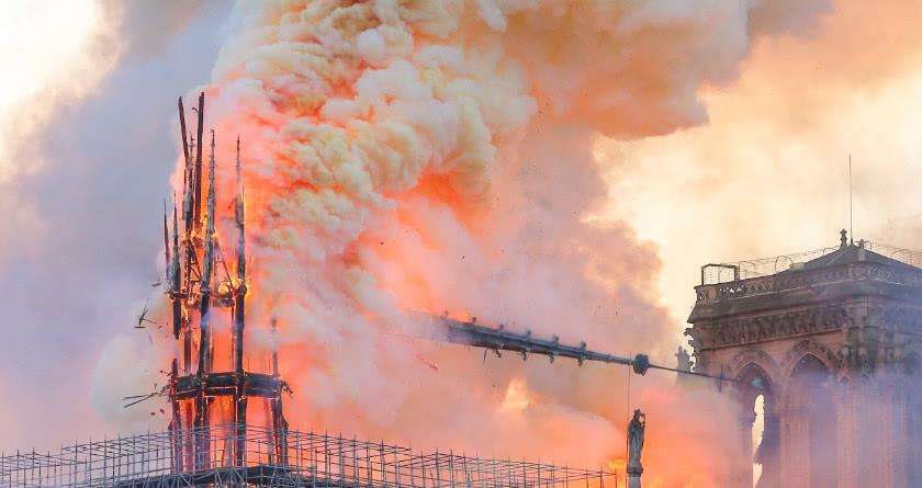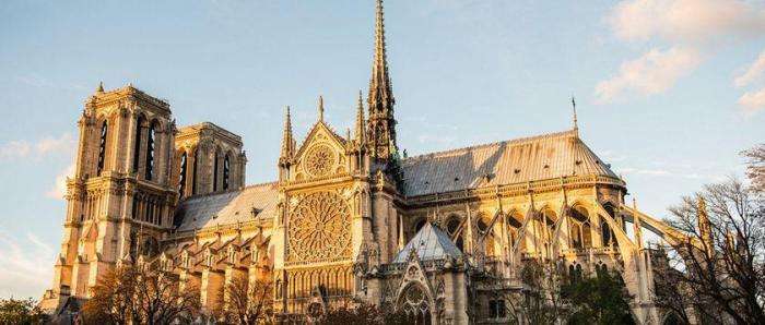 侧面的巴黎圣母院在2019年经历大火,主体的石基部分保存完好,但屋顶不幸罹难,被烧去了部分。(图片来自网络)