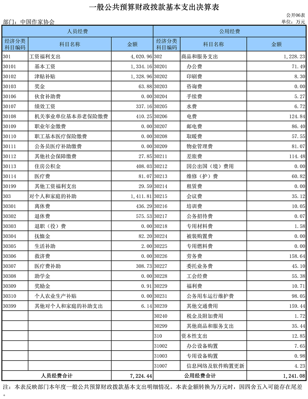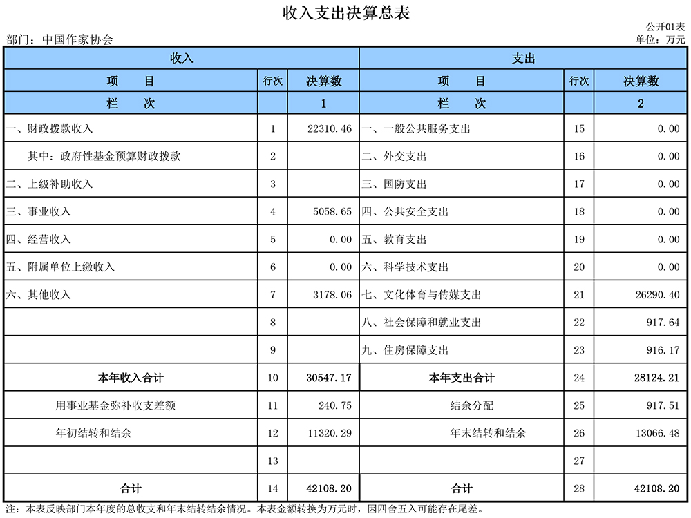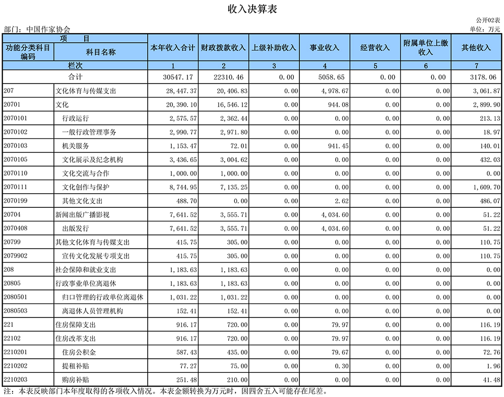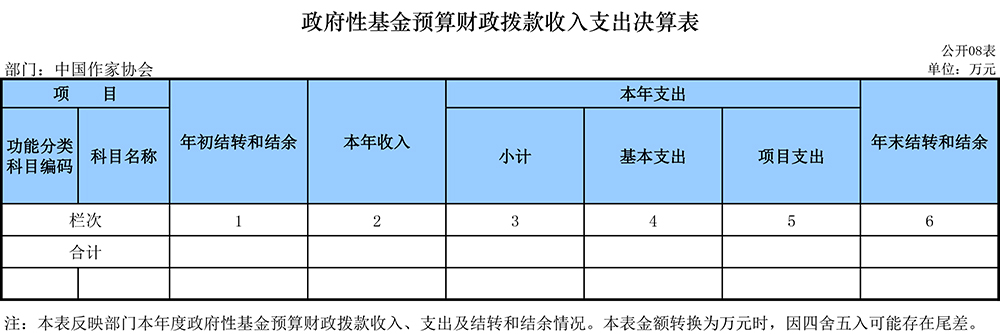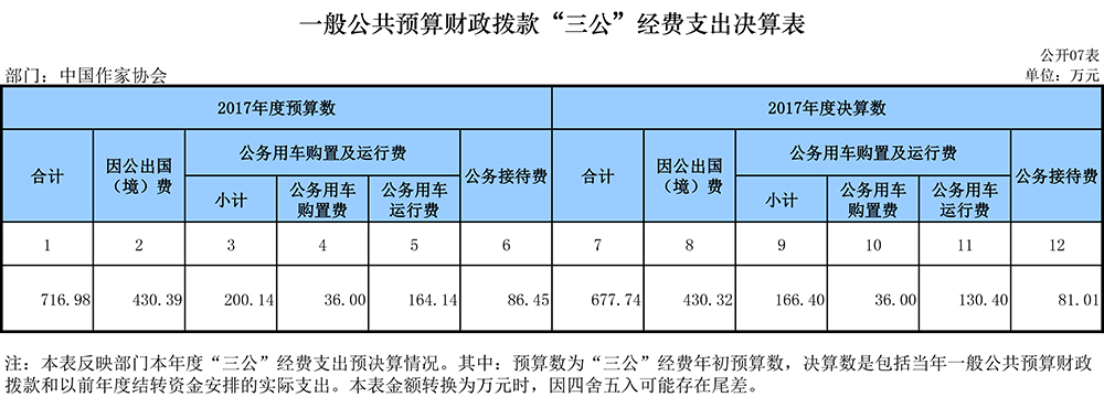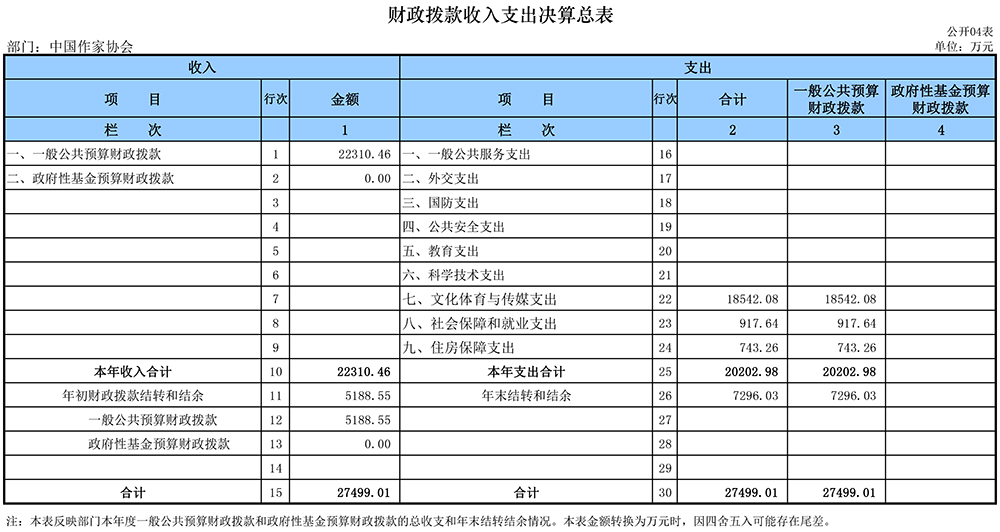 2018年中国作协部门决算表如下:
