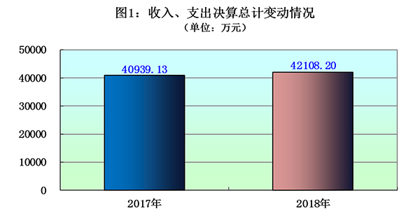 2018年度收、支总计42108.20万元。与2017年相比,收、支总计各增加1169.07万元,同比增长2.86%。