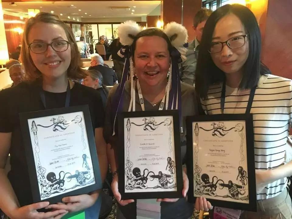 在住过的一个家庭里,王侃瑜看到一张证明被芬兰科幻圈“收养”的证书。因为芬兰的科幻圈比较强大,其他国家的科幻迷也很乐意加入这个“大家庭”。证书上面还有教父教母的名字,教父教母就是介绍人,而同时被收养的就是兄弟姐妹。2017年她也拿到了自己被芬兰科幻圈收养的证书。