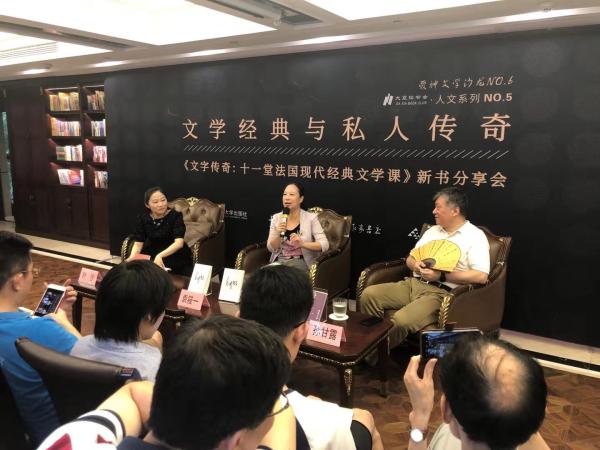 7月20日,华东师范大学外语学院院长、翻译家、作家袁筱一携新书《文字传奇:十一堂法国现代经典文学课》来到作家书店,与作家孙甘露、主持人叶沙一起,为读者上了一堂生动的“法国文学课”,共谈二十世纪法国文学经典与私人传奇。
