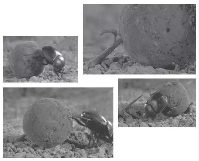 全片并没有一个贯穿始终的故事,而是由不同昆虫的生活情节构成。最为人所津津乐道的是屎壳郎推粪球的段落(图1):一只屎壳郎辛苦地推着粪球过来,碍于地势,它不由自主地随着粪球一起滚下土坡,动作让人发笑,突然,粪球被推到了一个小树杈上,让人悬起心来,随后屎壳郎像人一样,左看右瞧,反过来把粪球推走了。最妙的是最后镜头拉出到草地的大场景,让观众不禁遐想勤劳的屎壳郎这一路回家的历程中还要经历多少次这样的辛苦场景。人们对于有开端、发展、高潮、结尾的故事,永远都乐此不疲,这种对于昆虫生存过程中故事情节化的表达,目前仍在自然纪录片中大量运用,当然这还只是情节化的表达,更进一步者则如《我们诞生在中国》,讲述了四川大熊猫、雪豹、川金丝猴完整的故事。