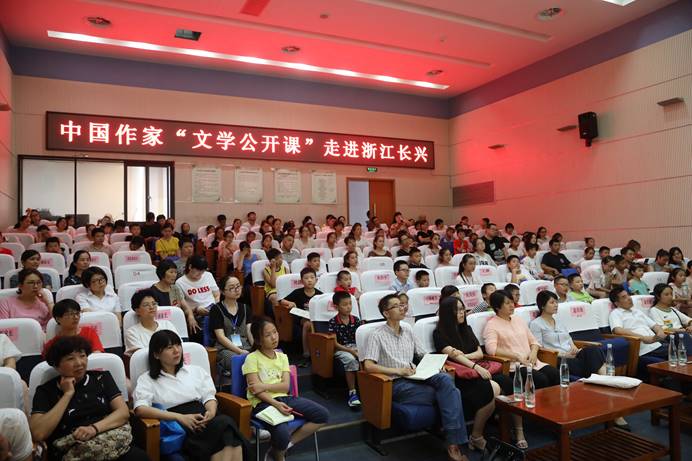 7月24日,由中国作家协会社会联络部组织的中国作家“文学公开课”系列文学公共服务活动走进浙江长兴少年作家培训基地。本次“文学公开课”是今年中国作家“文学公开课”继进警营、进校园活动之后的第三站深入基层的公共文学服务活动,邀请全国优秀儿童文学奖获奖作家萧萍、鲁迅文学奖获奖作家黄咏梅为300余名长兴县少年作协会员、学生家长、文学工作者、文学爱好者讲授文学创作经验,分享文学创作感悟。