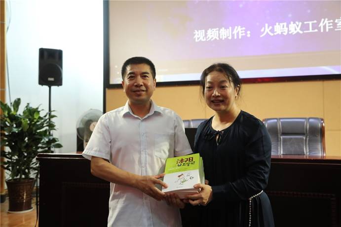 黄咏梅向长兴优秀少年作家代表赠送图书并合影留念