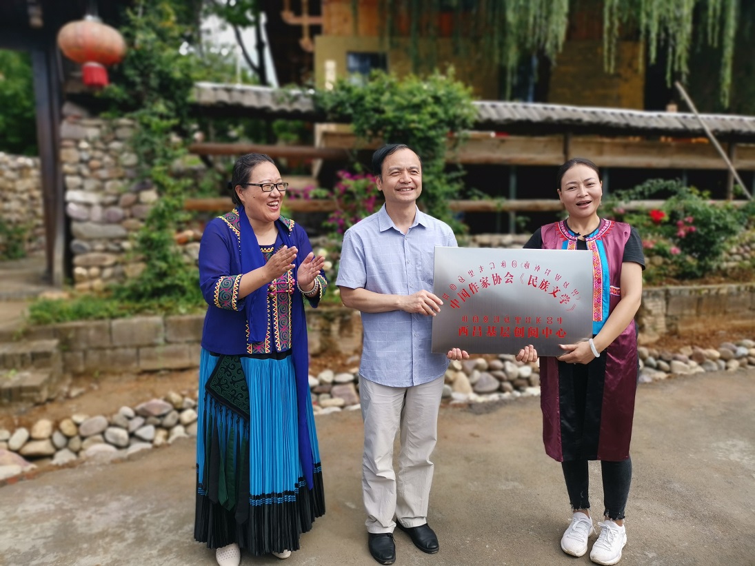 《民族文学》副主编陈亚军为《民族文学》西昌基层创阅中心授牌(李春摄)