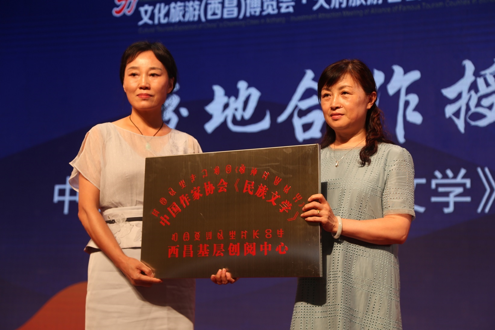 《民族文学》主编石一宁为《民族文学》西昌创意写作中心授牌