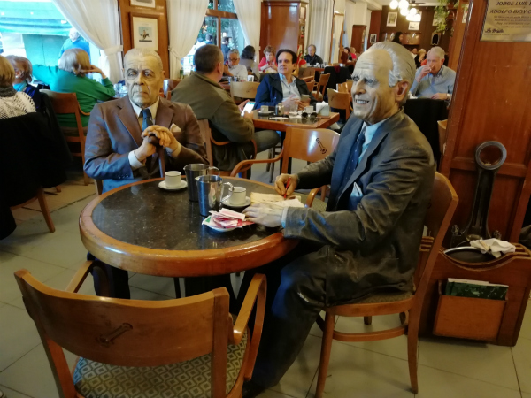 博尔赫斯和好友卡萨雷斯在餐厅的雕塑