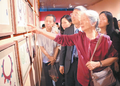 常沙娜向敦煌研究院院长赵声良介绍展品 周缘 摄