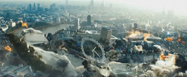 看着人类辛苦创造出来的城市文明被毁灭,这是外星人入侵、世界末日这一类灾难性科幻电影的独特魅力。不得不承认,欣赏毁灭,这件事是有相当强烈的快感的。过去这二十年,CG特效的成熟,让好莱坞的科幻电影为我们提供了一次又一次这样的快感。当年在《独立日》里面,白宫被外星飞船给轰成碎片,这一幕在当时可以说是震撼之极。打这以后的好莱坞电影可以说是一发不可收拾,基本上每逢大片,都要毁灭个把美国的地标建筑。国会大厦、白宫这些自不必说,最惨的非那座金门大桥莫属,在电影里被毁灭了一次又一次。