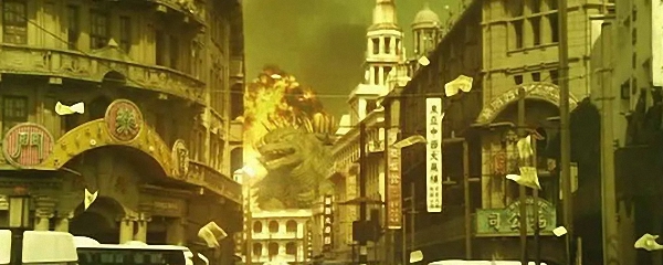 日本电影《哥斯拉之终极战役》(2004)中怪兽袭击上海的画面