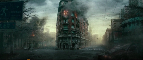 《上海堡垒》先行预告片中出现的上海城市被毁的画面,这是上海武康路那片