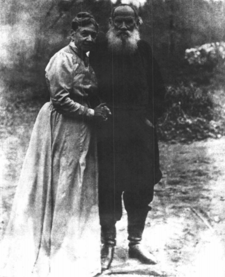 列夫•托尔斯泰与索菲娅•托尔斯泰娅结婚四十八周年纪念照,也是托尔斯泰最后一张照片(1910年)