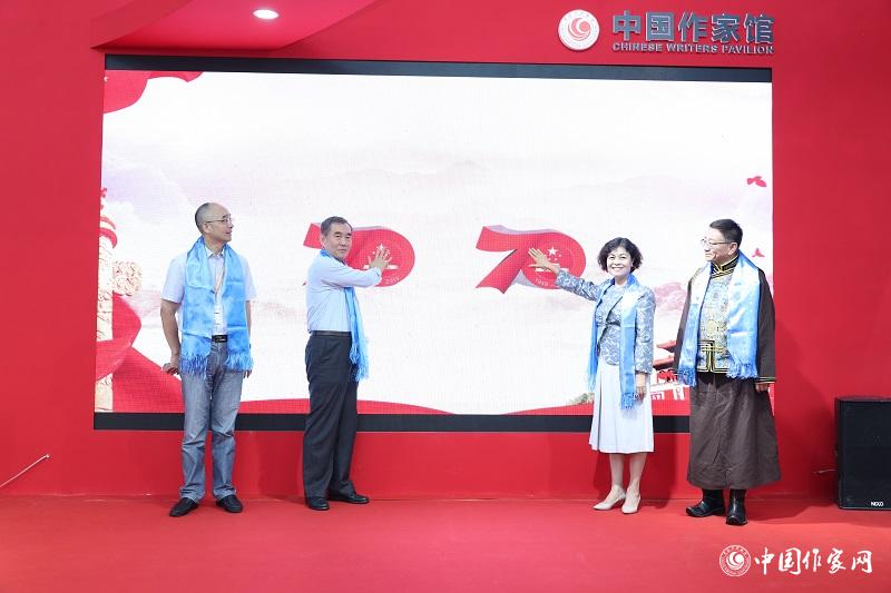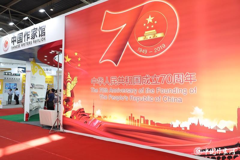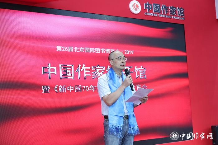 今年是新中国成立70周年,也是中国作协成立70周年。本届“中国作家馆”以“新中国文学70年”为主题。吴义勤在致辞中说,70年来,我们伟大的祖国在党的领导下,一路披荆斩棘、乘风破浪,走向辉煌、走向复兴。70年来,中国文学与新中国一路同行,与时代一同成长,不忘初心、砥砺奋进,精心描绘广大人民的奋斗历程,真情记录社会主义中国发展变迁,奉献出一批又一批文学精品,充分发挥文学艺术引领风尚、培根铸魂的作用。特别是党的十八大以来,在习近平新时代中国特色社会主义思想指引下,广大作家和文学工作者坚持与时代同步伐,坚持以人民为中心,坚持以精品奉献人民,坚持用明德引领风尚,全身心投入中国特色社会主义新时代,不断推出精品力作,我国文学事业呈现出百花竞放、蓬勃发展的繁荣景象。今年的“中国作家馆”聚焦新中国文学70年,就是为了全面总结新中国催生新文学的繁荣发展历程,全景展现中国文学从新起点迈进新时代取得的辉煌成就,并以此向不断进步、繁荣兴盛的中国文学致敬,向辛勤耕耘、潜心创作的中国作家致敬。也期待广大读者和文学爱好者通过“中国作家馆”进一步增进对中国当代文学的了解,在阅读文学作品的过程中获得前行的信心和力量。