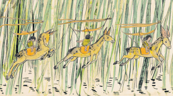 在绘制时,熊亮为了贴合古代的意蕴,用了水墨加矿物颜料,形成自己的绘画风格,所有的人物和故事都飘逸灵动。