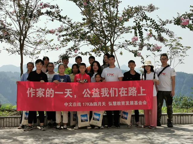 9月6日至7日,中文在线旗下17K、四月天签约作家小鱼大心、鱼歌、平凡魔术师、风御九秋、皇甫奇、风青阳在弘慧教育发展基金的工作人员的带领下,前往张家界桑植县,进行公益助学走访。深度走访当地两所中学,一所高中,与学生们座谈,分享人生经验,并进行了深入家访。