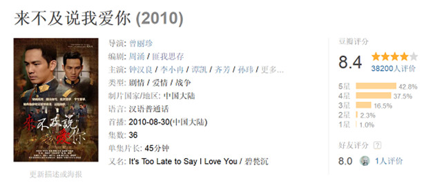 根据匪我思存作品改编的电视剧《来不及说我爱你》至今被誉为国产爱情剧的经典