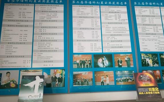 首届至三届获奖名单展板(时光幻象科幻博物馆供图)