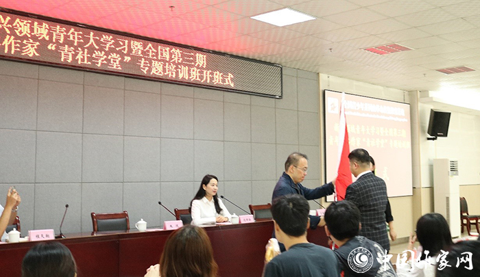 培训期间,共青团中央社会联络部部长李骥为学员们开设了“习近平新时代中国特色社会主义思想”专题讲座并参加结业仪式。他表示,自己也是网络文学爱好者,当今社会,网络作家的队伍越来越庞大,他们的作品不仅影响了一大批中国人,也在影响着越来越多的国外读者。这个群体对他人、对社会大众、对社会文化,甚至社会思潮会产生越来越重要的影响,因此他们如何认识自己、社会和国家,有着十分重要的意义。李骥说,每一个人都应该有自己的初心,同时,每个人的人生时代坐标决定了他的历史性,决定了历史和时代赋予他怎样的使命,我们既要坚守自己的初心,也要肩负起使命。正如一代代中国共产党人为民族的复兴,为人民的幸福不断奋斗,才得到今天这样一个繁荣富强的国家,李骥认为,我们不光要有初心和使命,还应当坚守并为了实现它们持之以恒地实干,不断努力奋斗。他呼吁在座的青年网络作家在实践、实干中守初心,护使命,写作出更多更优秀作品,为祖国的繁荣富强和伟大复兴增添一份力量。